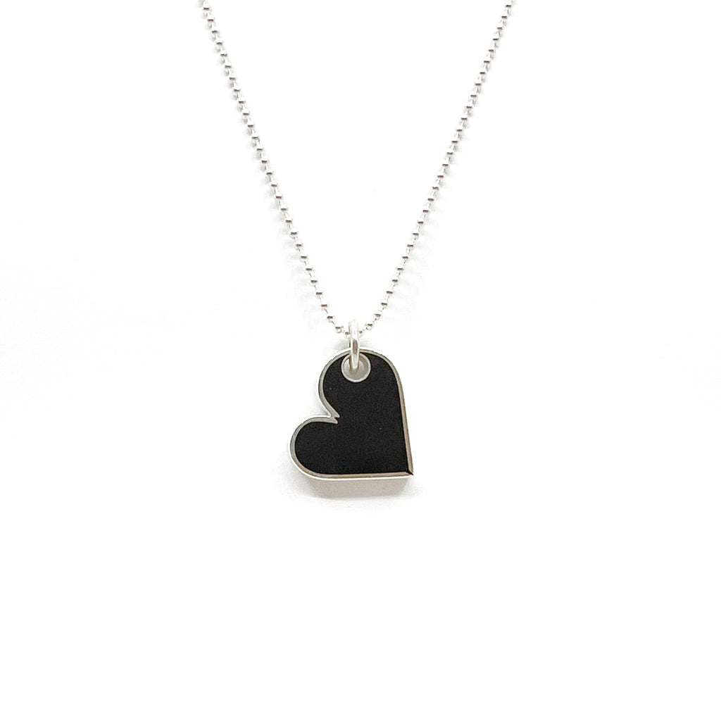 Sterling silver and hand colored resin heart pendant on 16”-18” sterling silver chain.